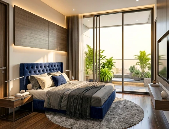 Designed within the spacious 3BHK layout, the primary bedroom at Roseró Elena offers a comfortable and elegant retreat with ample natural light and ventilation. It includes a well-appointed ensuite washroom and generous wardrobe space, blending modern functionality with a refined living experience.